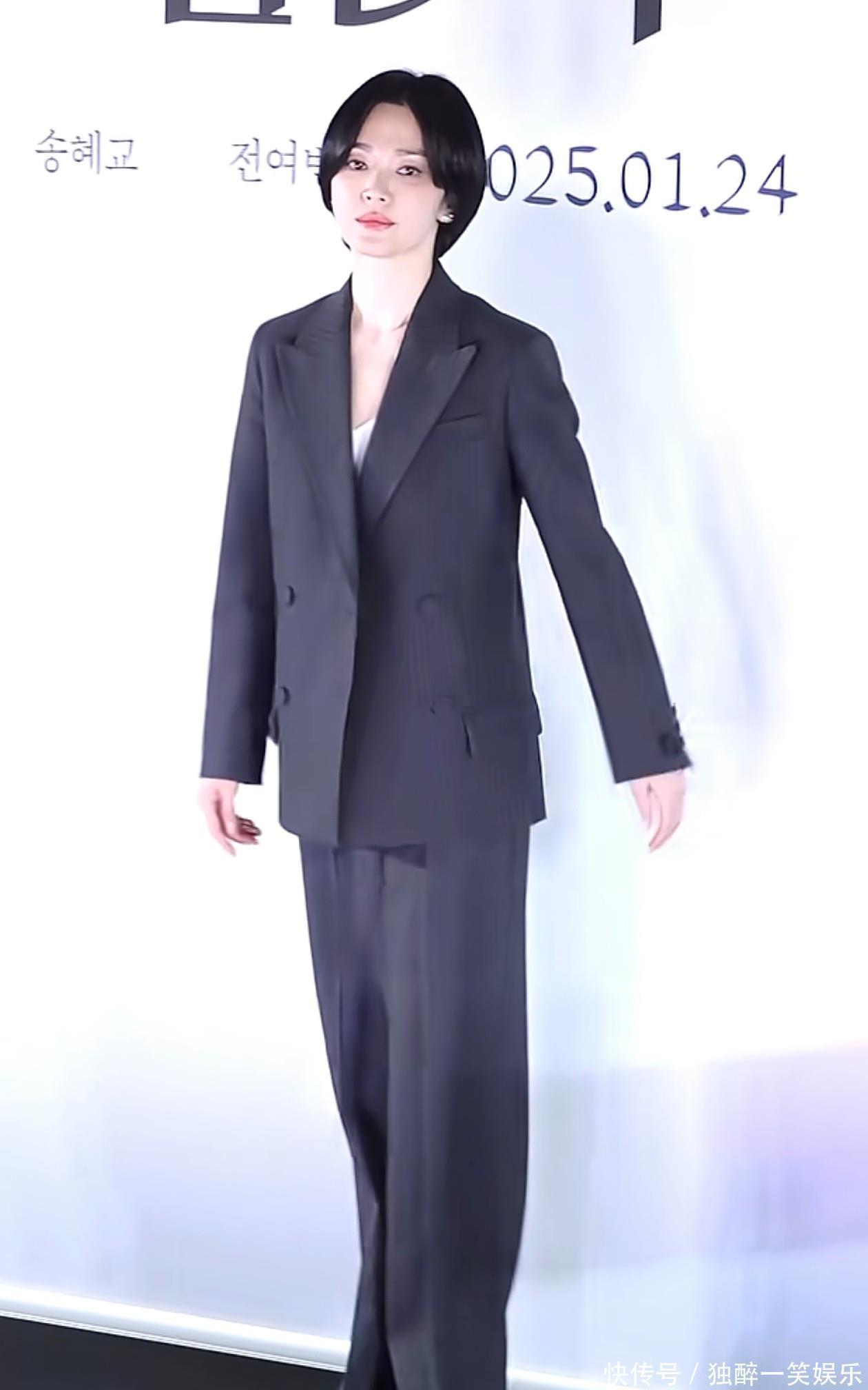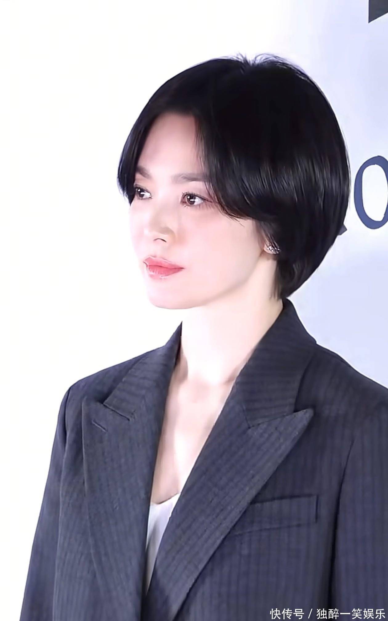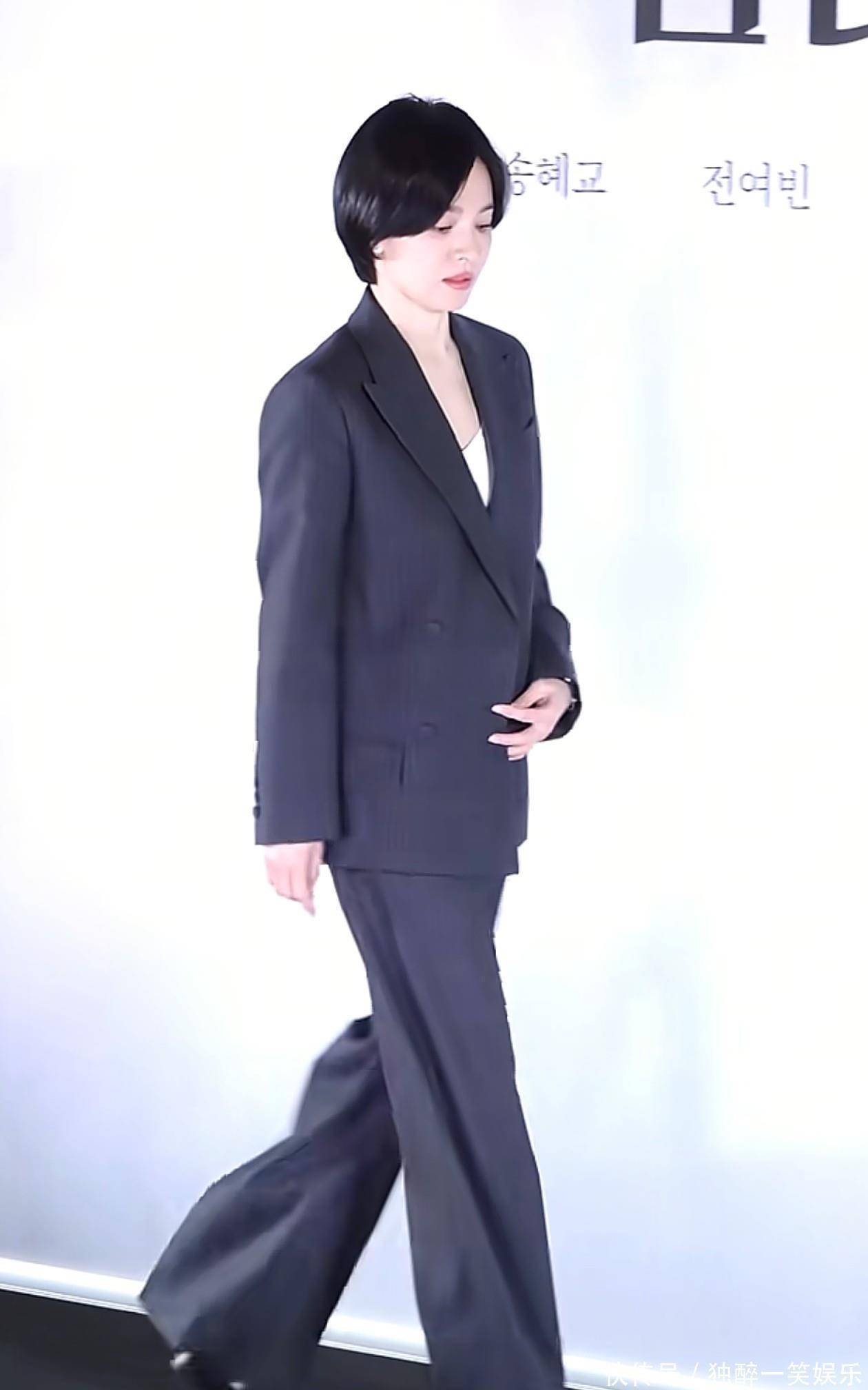 只要不是花花绿绿的颜色,其他颜色像黑色、白色、灰色的西服套装穿身上都尽显干练利落。这身穿搭衬的人更挺拔,有气场。你发现没,宋慧乔的发量不少,这点也让人特羡慕!