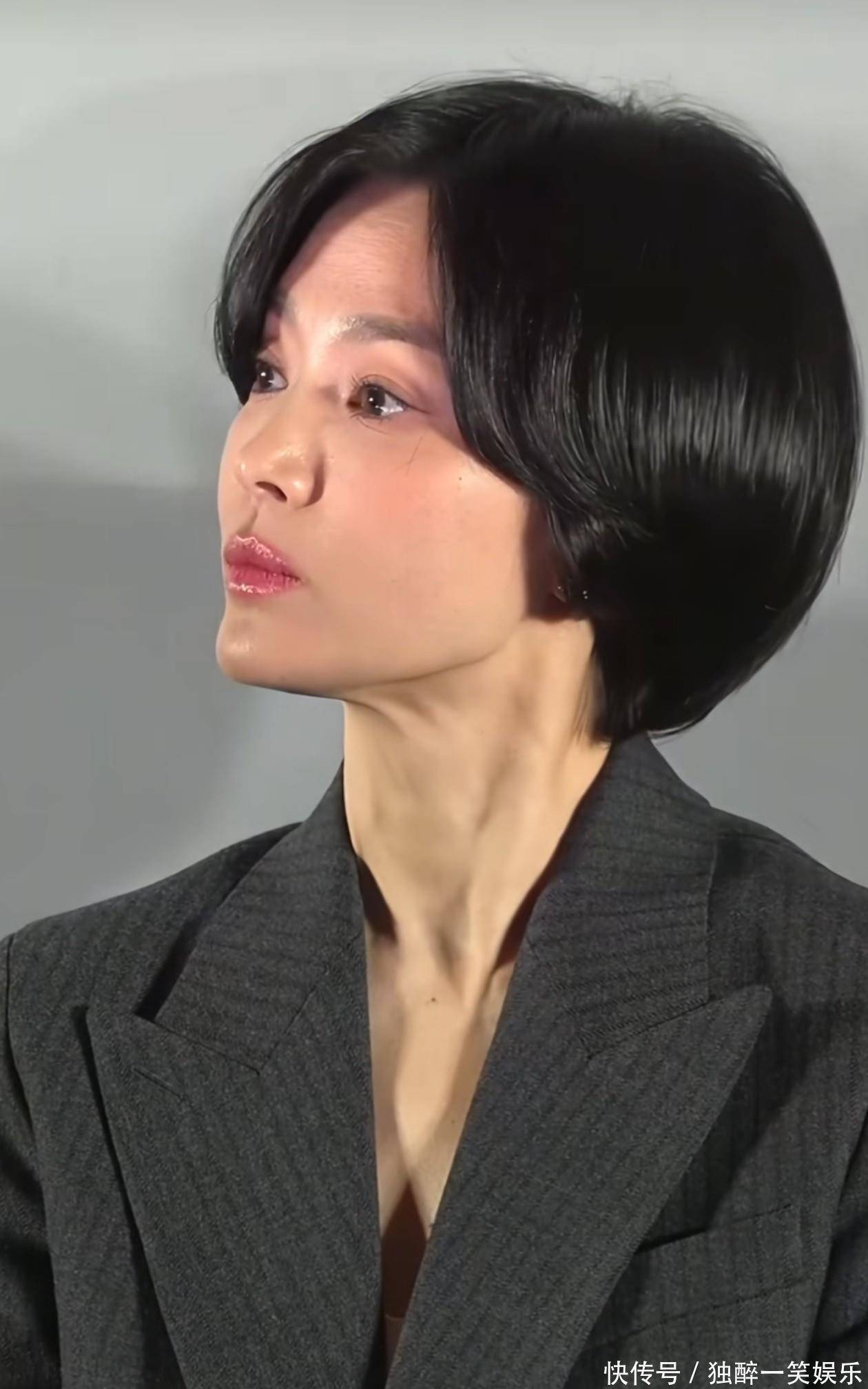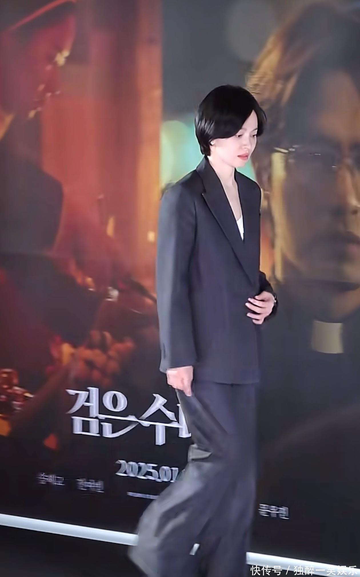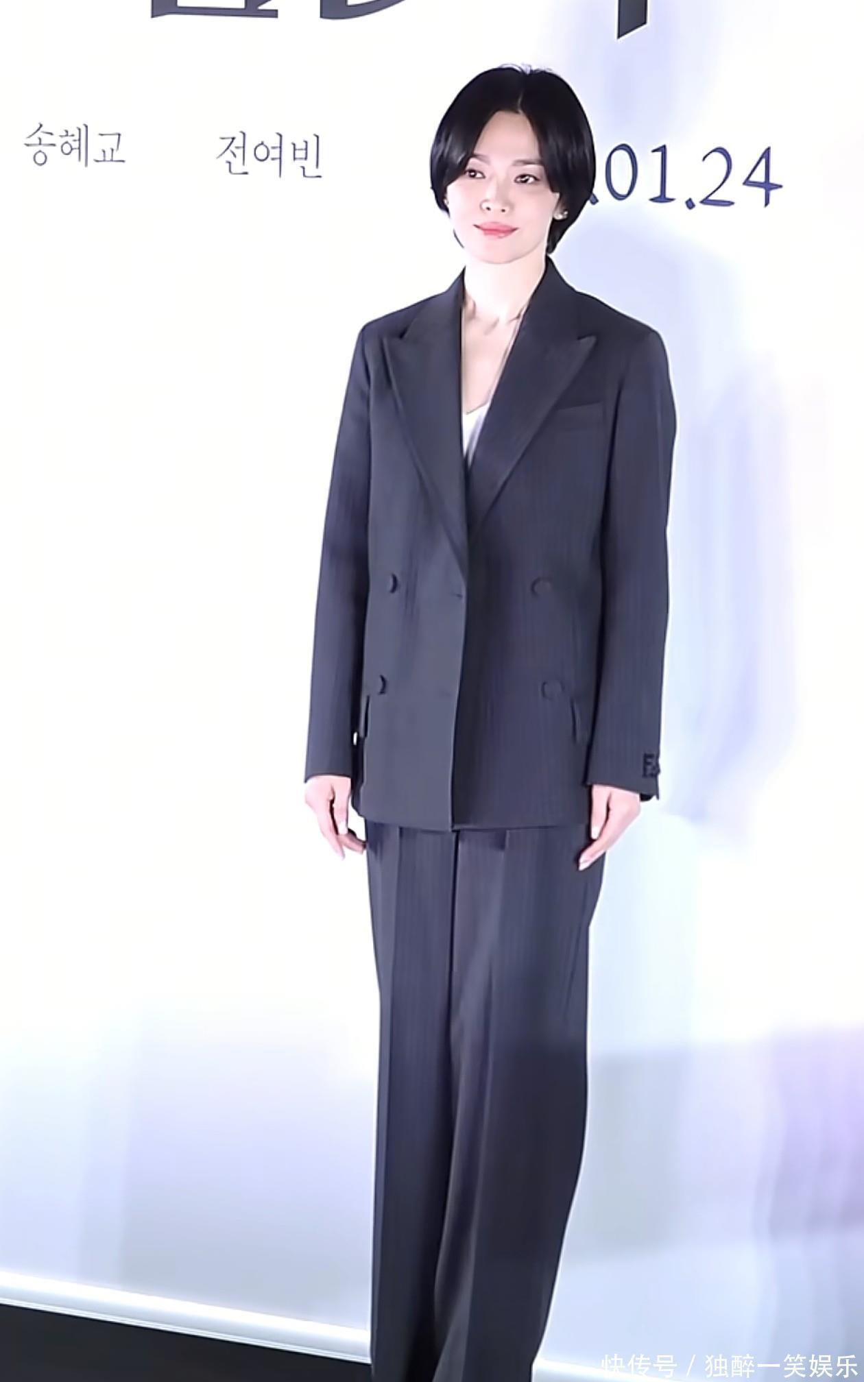 只要不是花花绿绿的颜色,其他颜色像黑色、白色、灰色的西服套装穿身上都尽显干练利落。这身穿搭衬的人更挺拔,有气场。你发现没,宋慧乔的发量不少,这点也让人特羡慕!